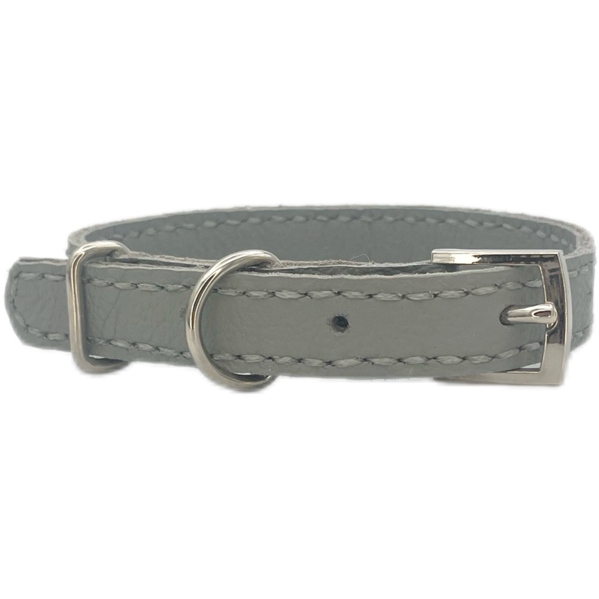 This collar is made using super Soft Leather and is all hand stitched, it is made to fit neck size 7.5-10.5 inches and is 14mm wide, and has a silver buckle, D ring and loop,