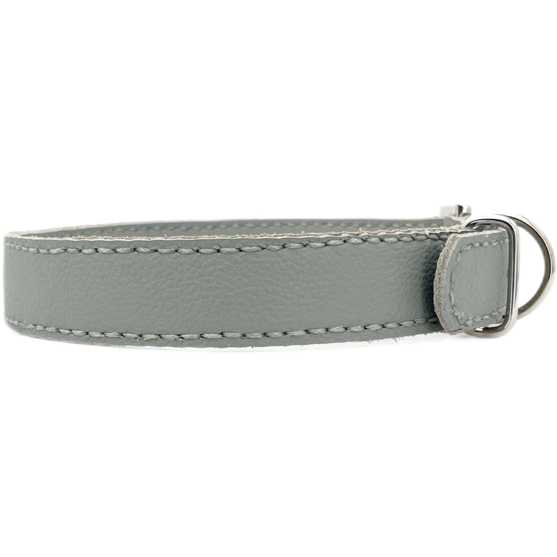 This collar is made using super Soft Leather and is all hand stitched, it is made to fit neck size 16-19 inches and is 25mm wide, and has a silver buckle, D ring and loop,