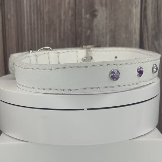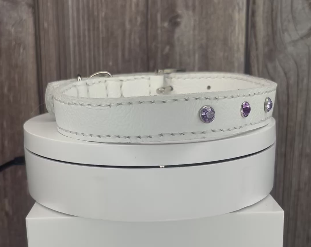 Medium White Collar with Lilac Diamantes