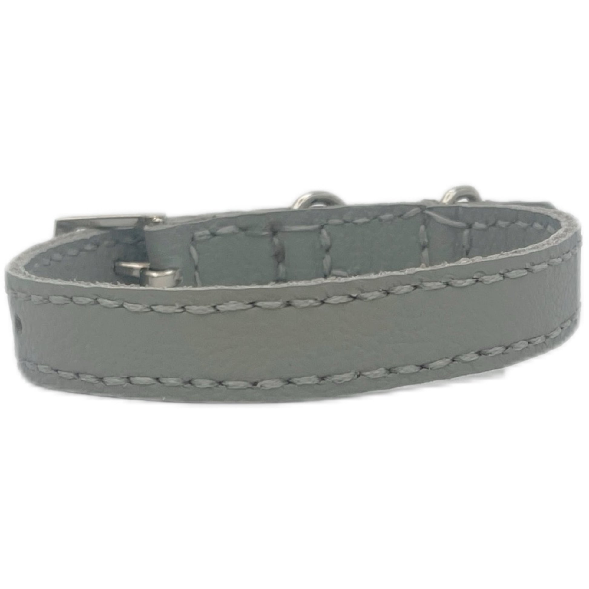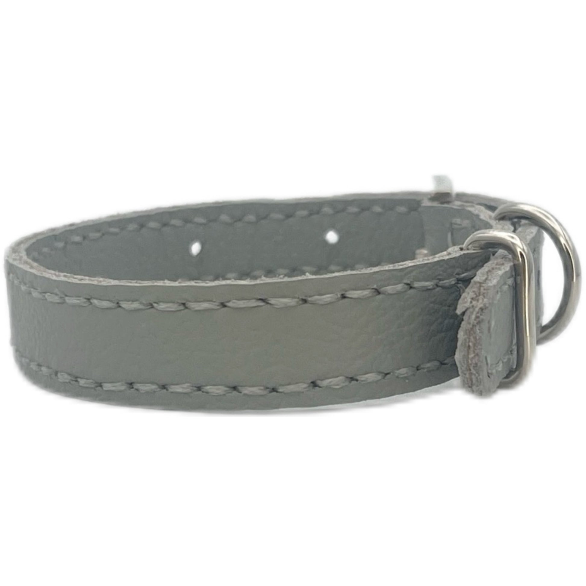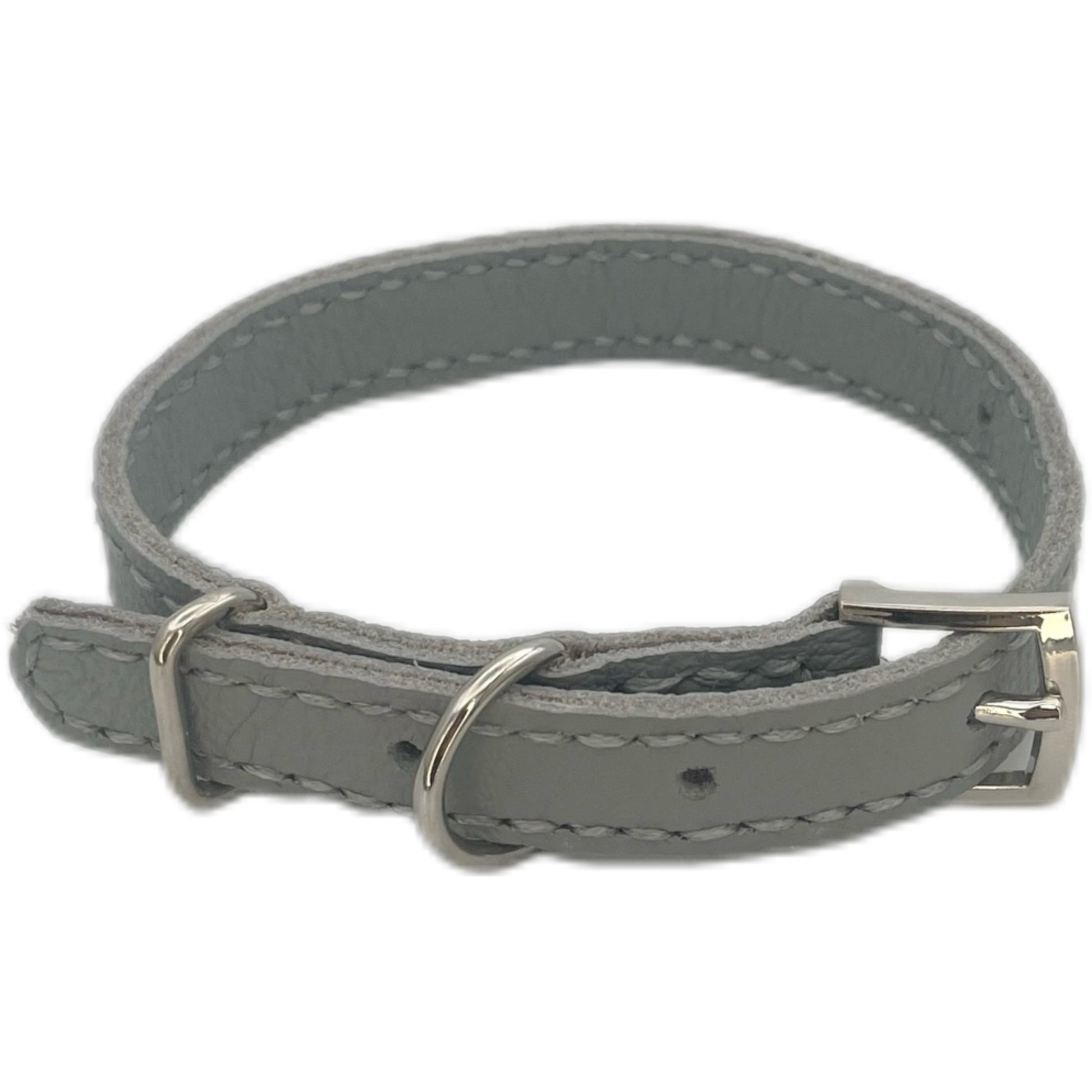 This collar is made using super Soft Leather and is all hand stitched, it is made to fit neck size 9-12 inches and is 16mm wide, and has a silver buckle, D ring and loop,