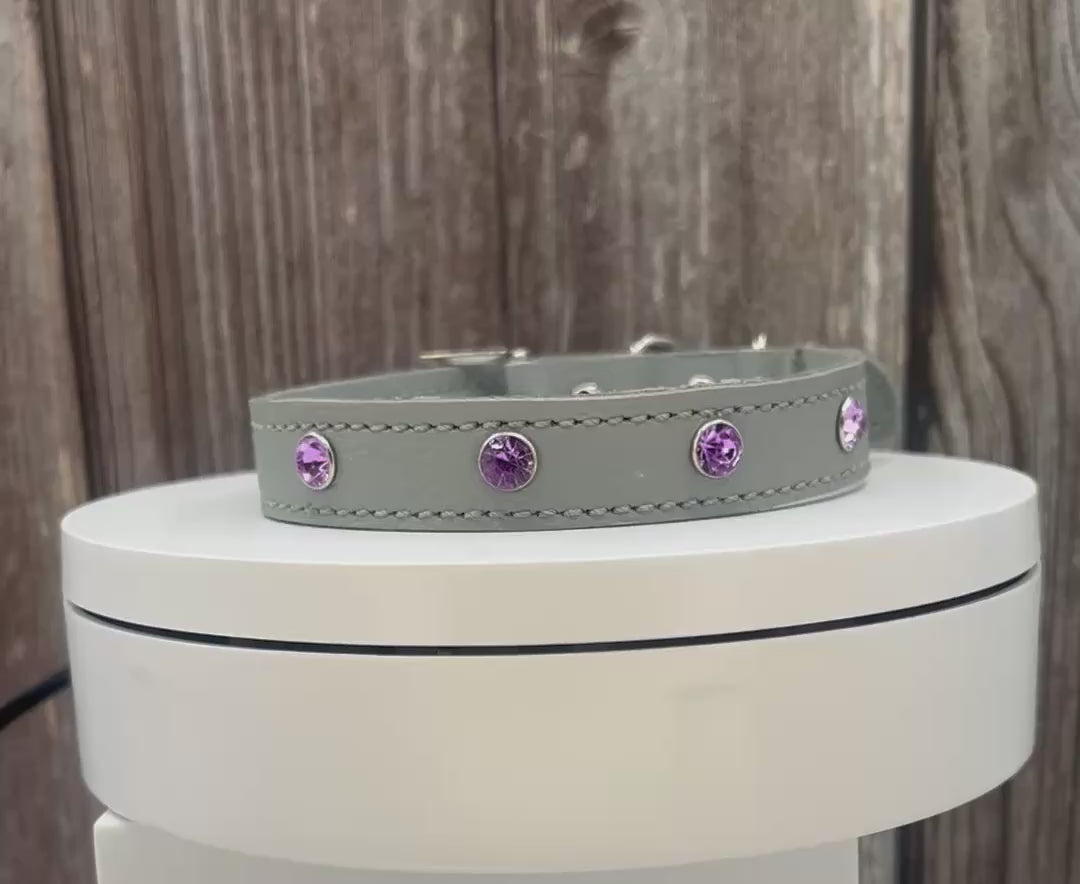 This collar is all handmade and stitched with grey bonded nylon thread, the leather is biker leather so is really soft and super durable,