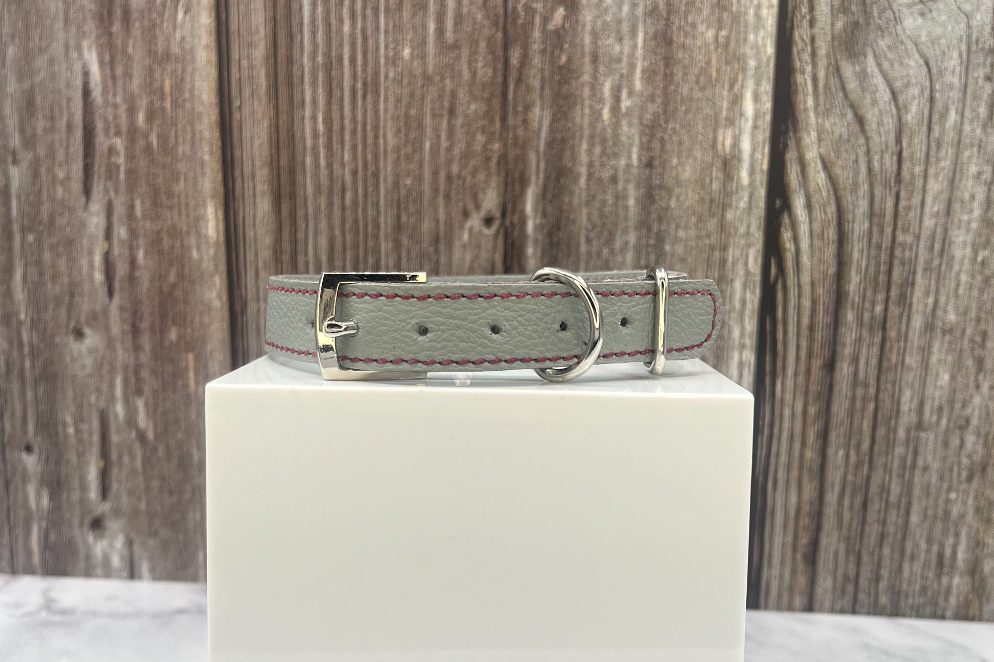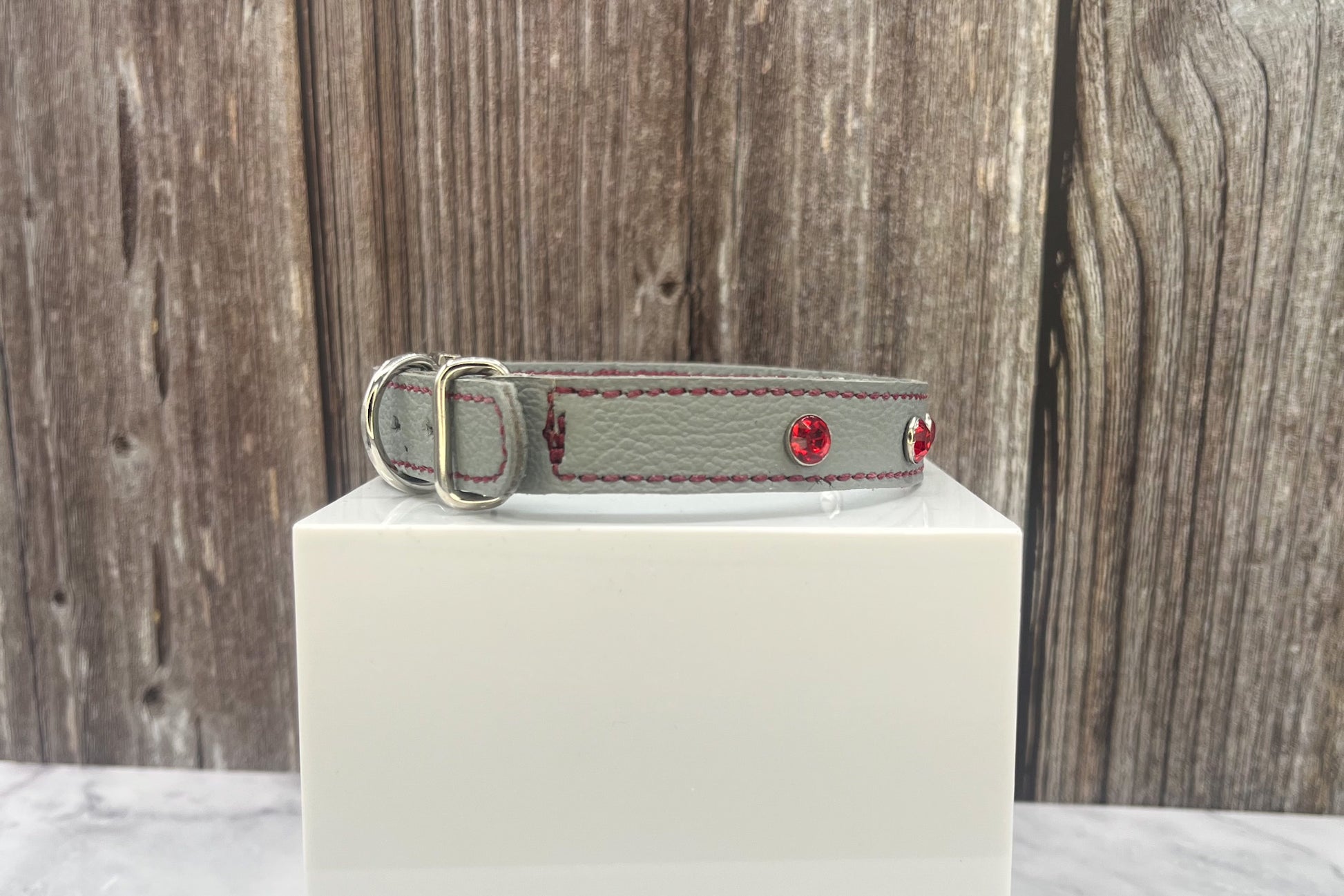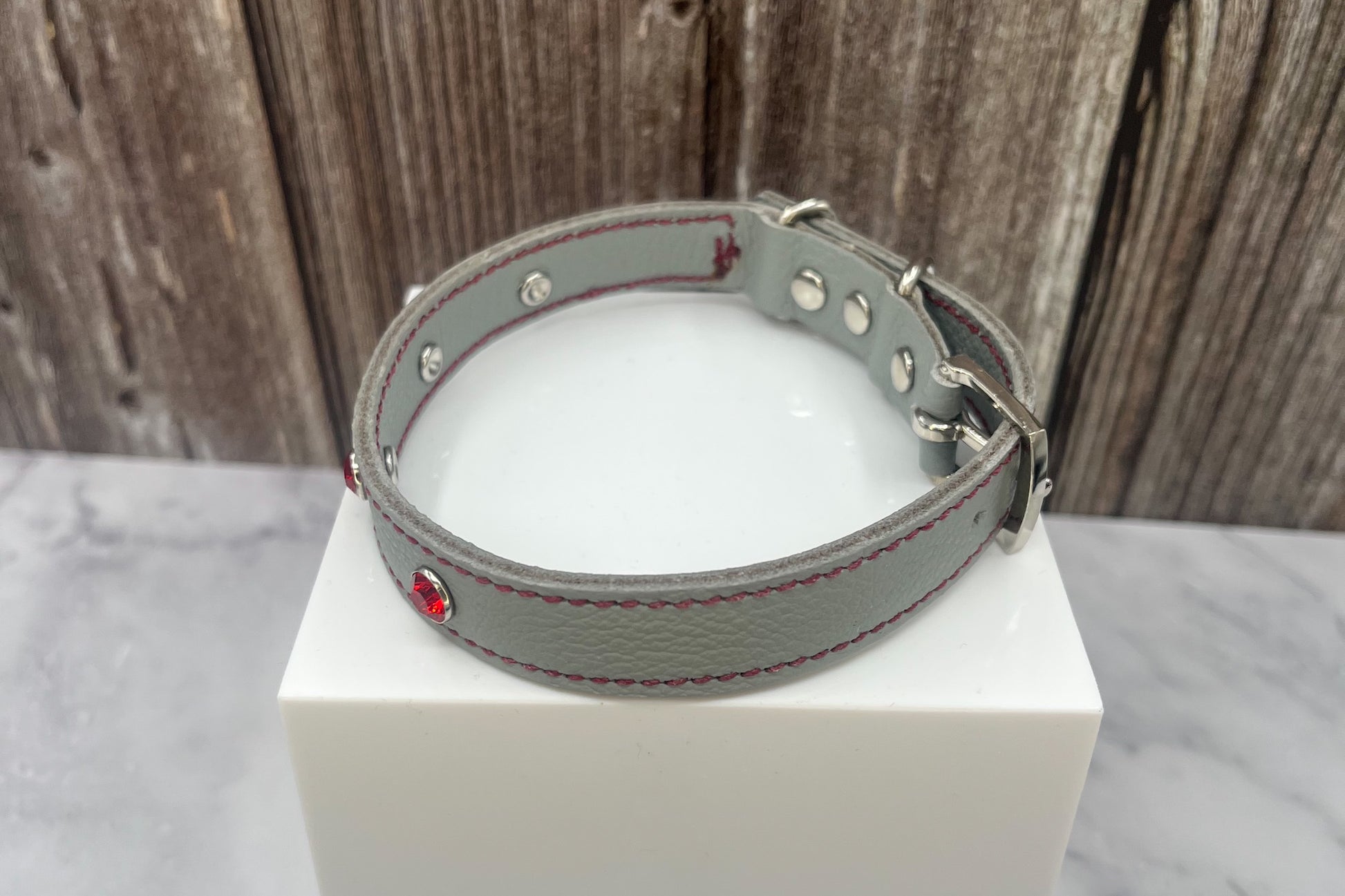 Grey Leather Collar with Red gem rivets,